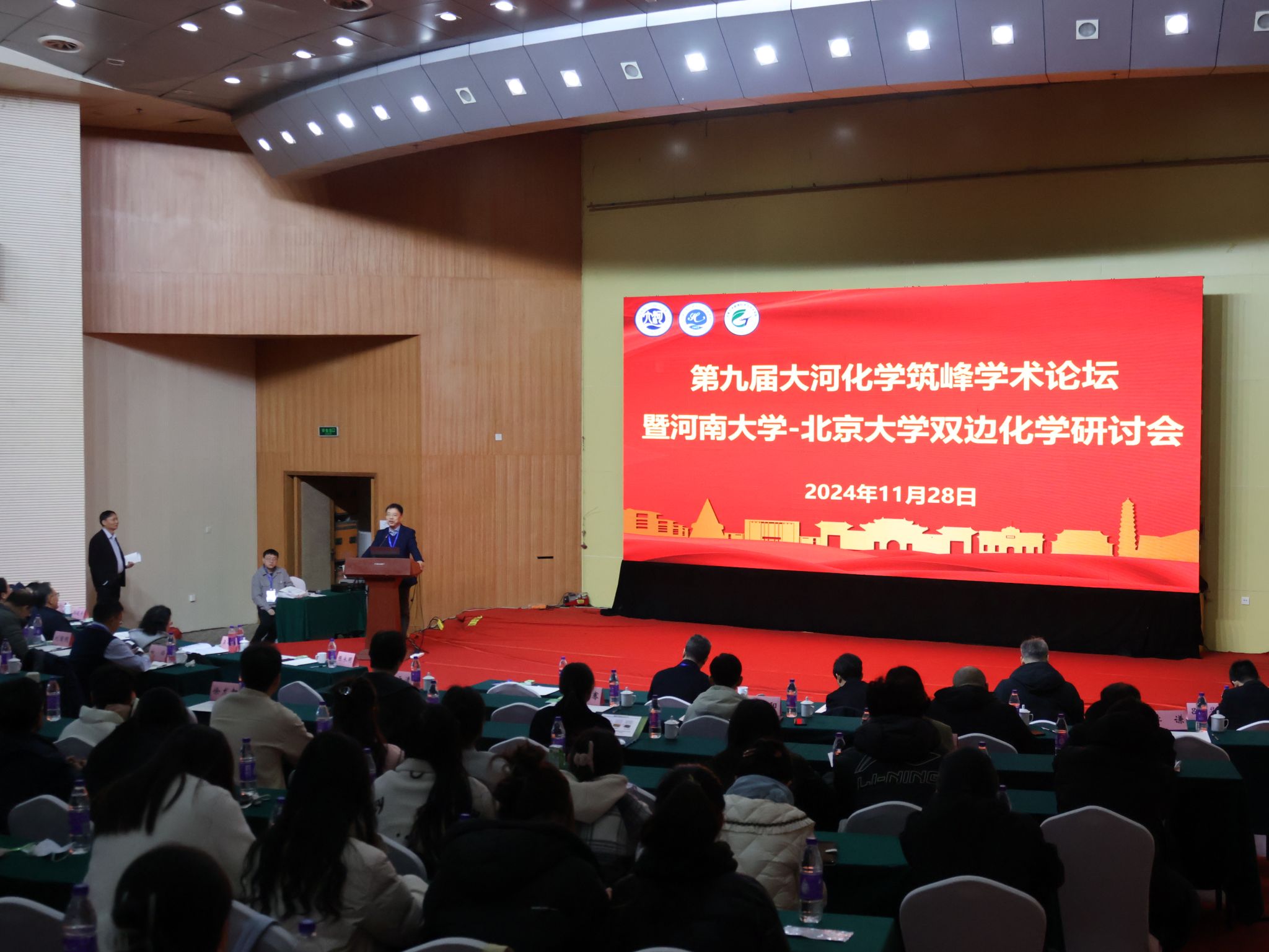 2024年11月28日,第九届大河化学筑峰学术论坛暨河南大学-北京大学双边化学研讨会在中州颐和酒店一楼报告厅成功举办。来自北京大学、清华大学、浙江大学、吉林大学、北京化工大学、江南大学、郑州大学、中国科学院化学研究所的16名知名专家学者,以及伟德betvlctor体育官网、纳米科学与工程研究院、能源科学与技术学院的200余名师生参加了论坛。国家杰青、伟德betvlctor体育官网院长陈永明教授出席并致辞,执行院长徐元清教授主持开幕式。