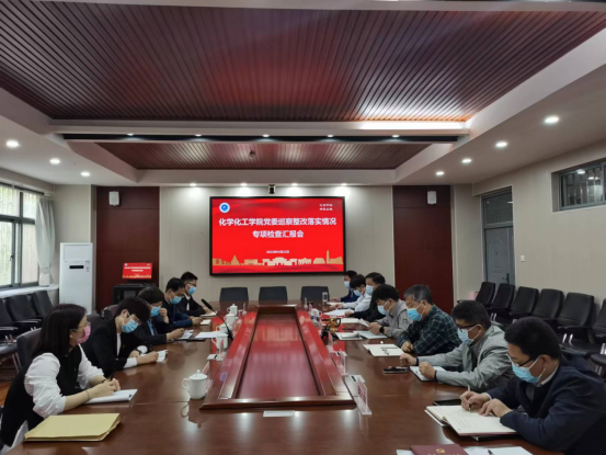 4月22日上午,化学化工学院党委巡察整改落实情况专项检查汇报会在学院220会议室举行。校党委巡察办正处级巡察专员胡春贞一行五人莅临学院检查指导巡察整改工作。化学化工学院党委委员、领导班子成员、党委办公室主任参加会议。汇报会由学院党委书记翟新礼主持。