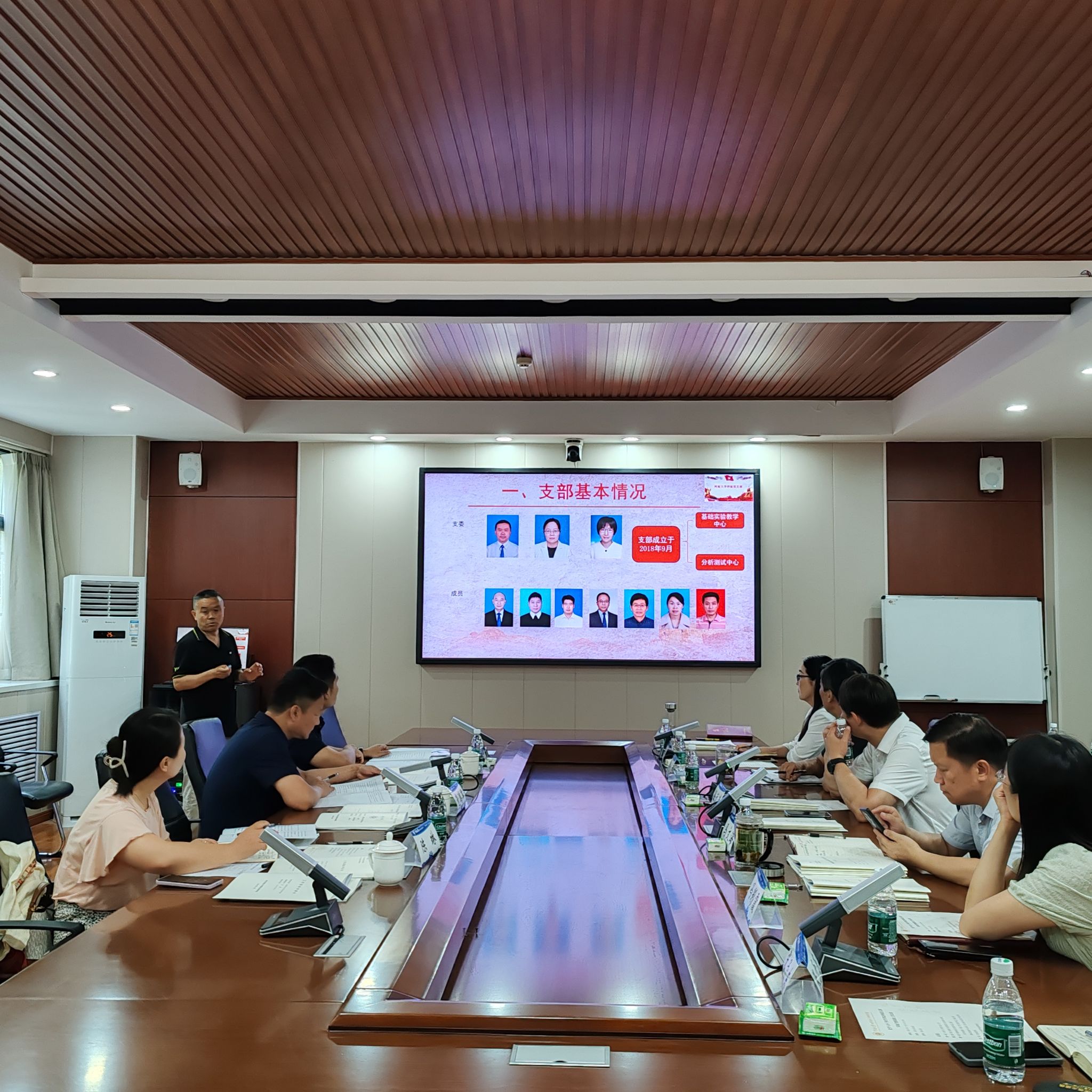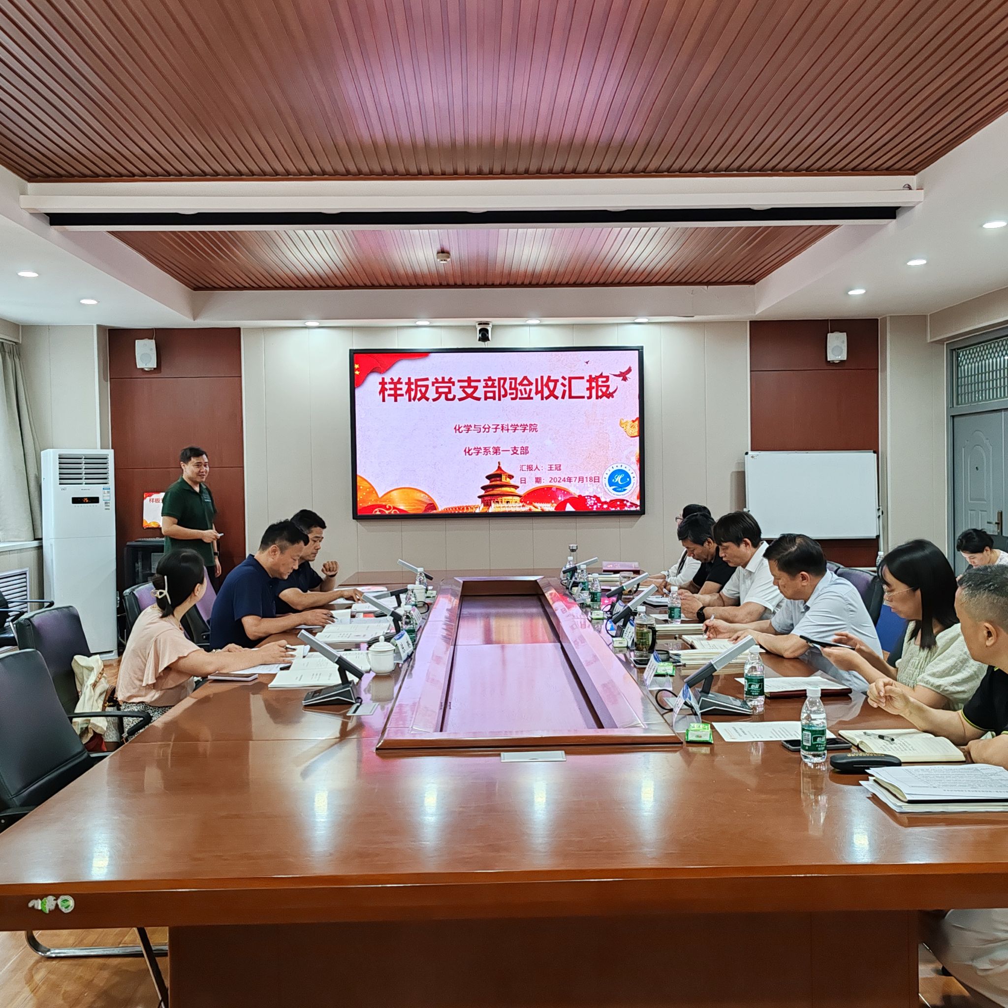 化学系第一教工党支部书记王冠、测试实验中心党支部书记张予东分别围绕实现“七个有力”的目标要求,从党支部重点任务完成情况、党建工作与专业建设结合、特色经验和做法、辐射引领作用发挥等方面向专家组逐一进行了汇报。