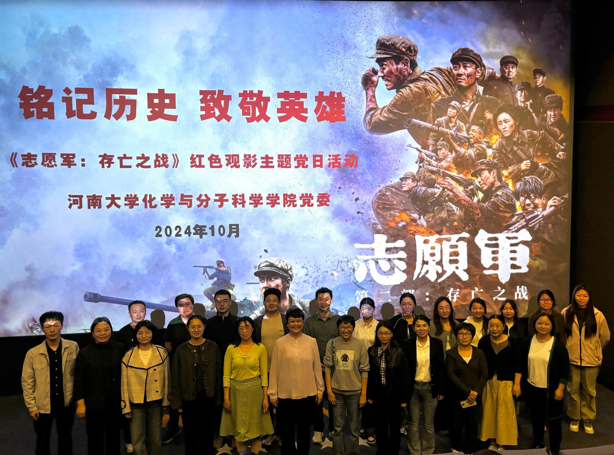 观影结束后,大家内心久久不能平静,对志愿军士兵的英勇事迹和无私奉献精神有了更加深刻的认识和理解。本科生化学二支部党员孙悦婷说,正是先辈们的舍生忘死、艰苦奋斗 ,才换来了我们当下的和平,作为新时代的大学生,更应该继承先辈遗志,奋发学习,为中国式现代化建设奉献力量。化学系第二教工党支部书记冯彩霞说,通过这场观影,让我们更加深刻的感受今天的和平发展来之不易,感谢先辈们大无畏的牺牲精神,向最可爱的人致敬!党委书记常凤香表示,志愿军战士们用鲜血和生命换来了我们今天的幸福生活,我们应当倍加珍惜这来之不易的和平,铭记历史,缅怀先烈。在今后的工作学习中,我们要从抗美援朝精神中汲取力量,在面对困难和挑战时,勇毅前行,坚定信念,为推进学校双一流建设和学院一流学科创建贡献自己的智慧与力量。