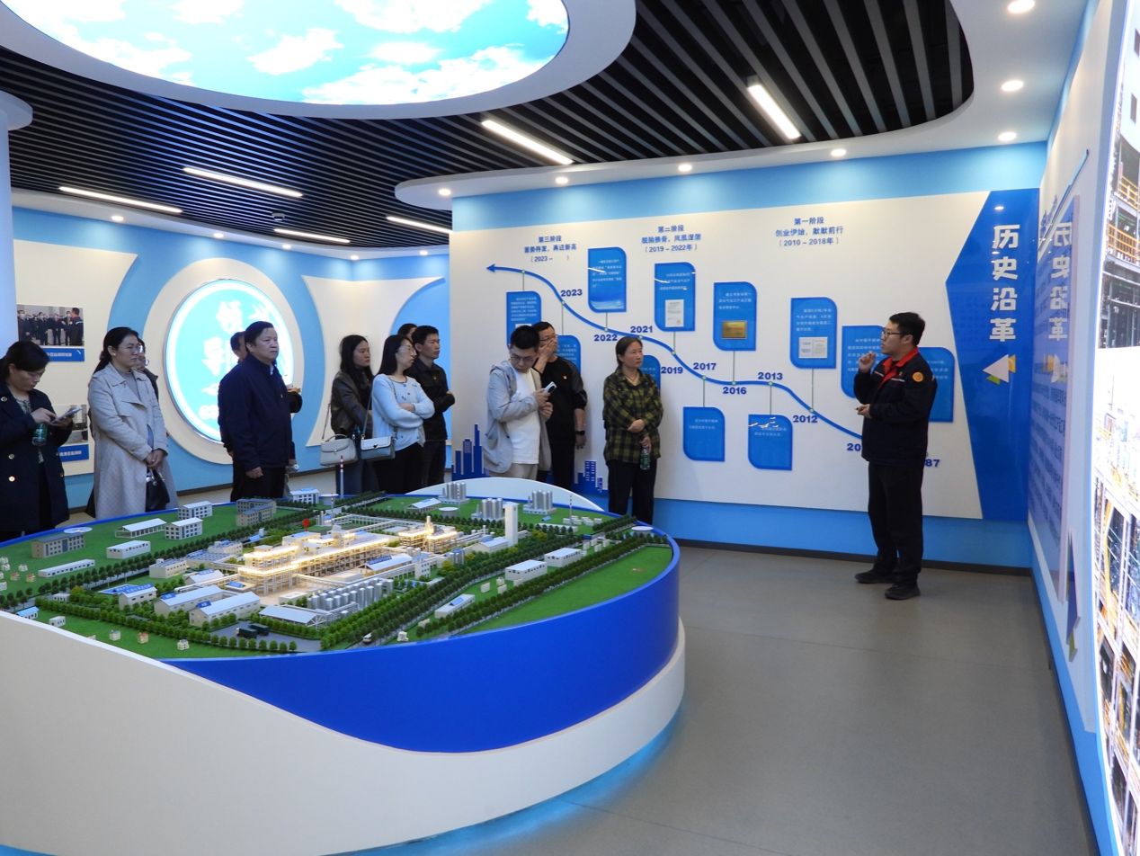 座谈结束后,大家到开封华瑞化工新材料股份有限公司实地参观。企业负责人简要介绍了公司的发展概况和主营业务,并结合光气产业链发展,向大家详细介绍了企业在专业化、精细化方向上的探索成果。在参观智慧管理中心过程中,工作人员详细介绍了企业通过数字化平台对生产全流程进行精准管控,构建了“六位一体”的绿色安全管理体系,并依托“云端能碳平台”,实现了节能减排与绿色低碳发展的双重目标。双方还就学生实习、就业和职工培训等校企合作事宜交换了意见。