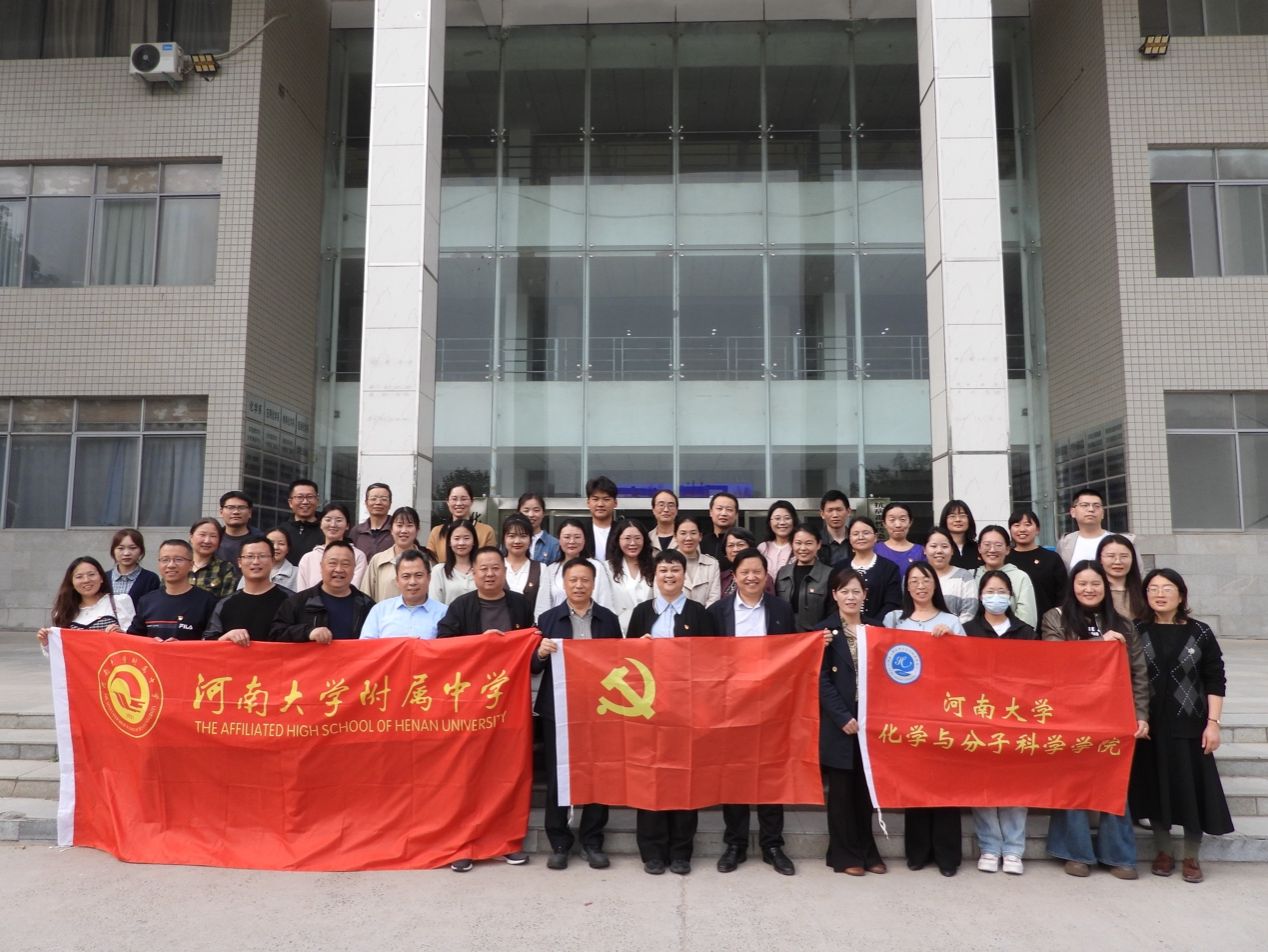 在交流环节,化学系第二党支部书记庞靖宇带领大家学习了习近平总书记在全国两会期间的重要讲话精神以及教育部部长怀进鹏在“部长通道”上的相关发言,并结合工作实际,分享了对“教育、科技、人才”一体推进战略的理解与体会。河大附中学生处主任魏力权、总务处副主任汪世凯、化学教研组组长李强等老师围绕本科生教育实习、高中生拔尖创新人才培养等问题进行了深入交流。双方绕化学教育的实践问题展开了深入研讨,并就推动“高中-大学课程深度融合”工作,达成多项共识。
