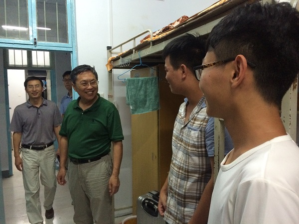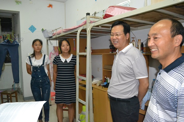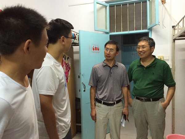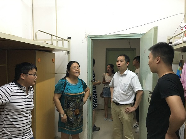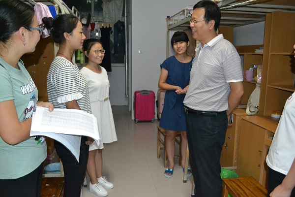 方蒙、杨更须、宁攀一行人前往27号楼女生宿舍,牛景杨、宋立华、吴玉锋一行人前往28号楼男生宿舍,柏龑、张普玉、郭佳等一行人走进研究生宿舍。迎新期间,伟德betvlctor体育官网领导始终与志愿者们站在同一战线,亲临迎新工作站指导工作。在一天的辛苦工作后,各位领导仍不辞辛劳,亲访慰问每个宿舍的每位新生,以师长,更以朋友的身份与他们交谈,认真细致地询问新生们是否适应开封的天气,食堂的饭菜是否合口,对寝室的安排是否满意,与室友相处是否融洽等情况,对新生反映的各种问题他们更是耐心地聆听并给出宝贵意见,同时,叮嘱他们在生活、学习上有任何困难一定要及时向学院老师反映。