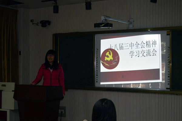 12月7日晚,伟德betvlctor体育官网本科生第三党支部支部会议——“十八届三中全会精神学习交流会”在院311会议室举行。该支部全体学生党员与会。会议由该支部党员、2011级年级团支书张苗苗主持。 会议采用代表讲解与共同讨论相结合的方式,从经济、民生、法制、生态等四个方面对三中全会精神进行了学习交流。会议开始,张苗苗首先就党代会和人民代表大会的地位性质等为在座党员进行了区分,同在座党员一起再一次明确三中全会与两会的差别和联系。接着,她通过播放一段微动漫,帮助大家一起回顾了历届三中全会的主要内容以及本届三中全会包括“383”改革方案在内的大家普遍比较关注的会议内容。随后,该支部化工专业,材料化学专业,化学实验班,化学专业依次派代表分别从十八届三中全会有关经济体制改革、民生、民主政治与法制建设和生态文明建设等方面,结合自身所见所闻所感为与会党员作出解读,并进行了交流讨论。化工专业代表张照耀讲到,从改革开放30年经济飞速发展中,他认识到,大学生要敢于创新,抓住机遇,迎接挑战,超越自我。黄青山诙谐幽默且恰到好处地分析了本届三中全会关于“单独二胎”,“废止劳教制度”等决策的原因。本次交流会气氛活跃,党员和预备党员们畅所欲言,各抒己见,深入了解了本次三中全会内容,收到了良好效果。