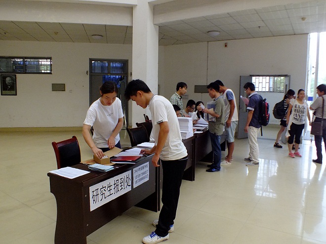伟德betvlctor体育官网研究生辅导员王琪琳及迎新志愿者早早来到迎新地点进行布置,迎新队伍“严阵以待”。炎炎烈日下,迎新工作如火如荼地进行着。工作人员收取材料、发放资料,有条不紊地进行着,保障同学们能够顺利入学。报到当天,研究生会各部门通力合作,积极、高效地完成了研究生新生报到工作。截至9月2日下午,伟德betvlctor体育官网2015级研究生新生基本完成报到。