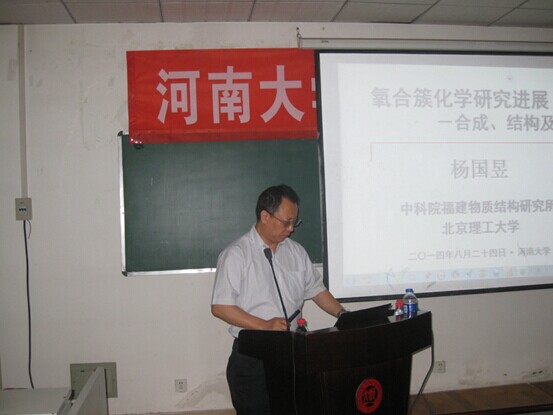 8月24日上午,杨国昱教授应邀为伟德betvlctor体育官网师生作了题为“氧合簇化学研究进展——合成、结构及性能”。报告内容主要有过渡氧簇、主族氧簇、稀土氧簇三个方面。合成方面,杨教授提出:现场第二取代反应、缺位点导向、缺位点协同导向、缺位点导向与导向组装、缺位点导向与降解及空间位阻五大策略。随后,杨教授以自己课题组发表成果为例,介绍了各类氧簇的结构及性能。报告结束后,杨教授一一解答了学生的疑惑。