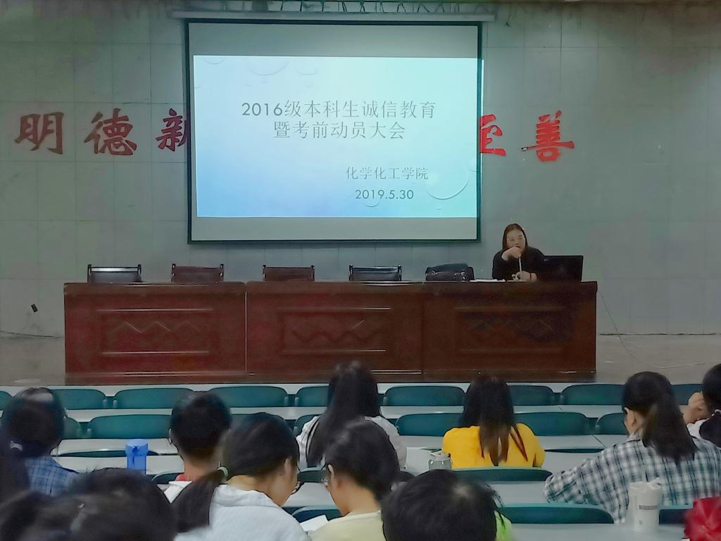 5月30日上午,伟德betvlctor体育官网2016级本科生在圆形报告厅召开诚信教育暨考前动员大会,此次会议由2016级辅导员宁攀主讲,2016级全体同学与会。