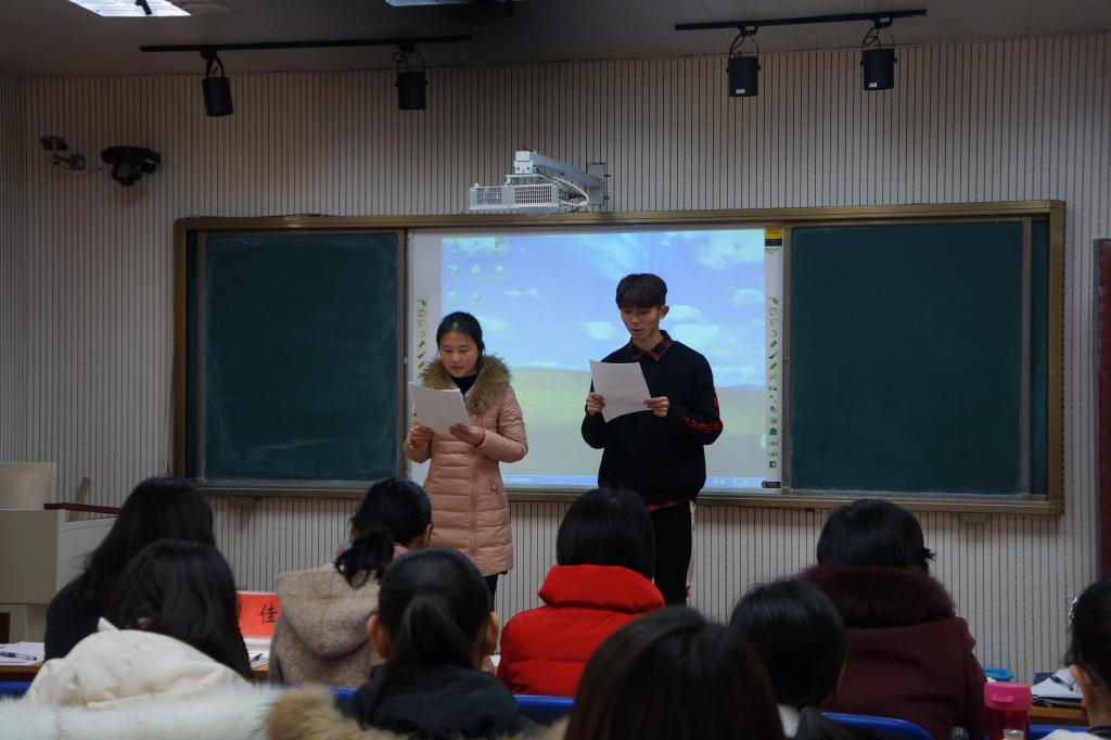 在激烈的角逐过后,评委老师从个人素养,教学设计,教学效果三个方面对参赛选手进行了细致点评,最终,张晨摘得桂冠,李雅银、王宇轩、段家茹获得二等奖,郑冰玉、肖雪、邹易谙,刘彩霞,孙玉玉获得三等奖。