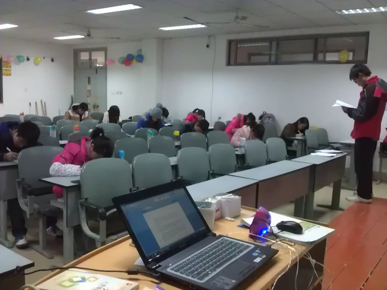 本次模拟考试由2011级实验班班委组织发起,活动得到了同学们的积极响应,并获得了老师的大力支持。考试所有环节均按照英语四级程序进行,最后分数由英语四级计分器计算而得,以确保客观公平。本次活动旨在指导同学们发现自己在英语四级复习中所存在的问题,查漏补缺,熟悉考试流程,从而以更好的状态迎接大学英语四级考试。