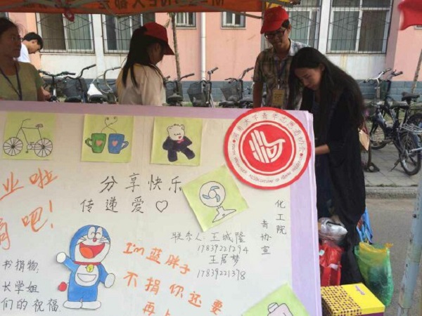 6月2日,化学化工学院青年志愿者协会在北苑公寓29号楼下正式启动了以“分享快乐,爱心传递你我他”为主题的“毕业生捐书捐物献爱心”活动。