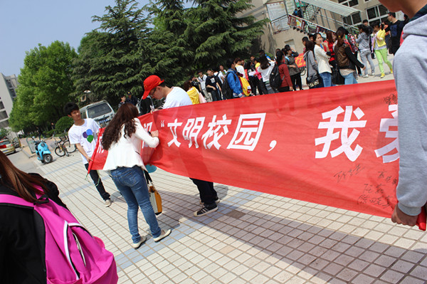 4月14日中午,伟德betvlctor体育官网2012级应用化学专业的同学们在三号教学楼义务打扫教室,开展了以“文明校园,爱我河大”为主题的团日活动。