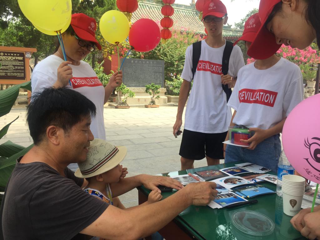 8月2日至20日,Frantic Chevilization 团队进行了走进清明上河园、龙亭、天波杨府、翰园、汴西湖、黄河滩等景点进行了为期18天的景区调研及文明宣讲活动。