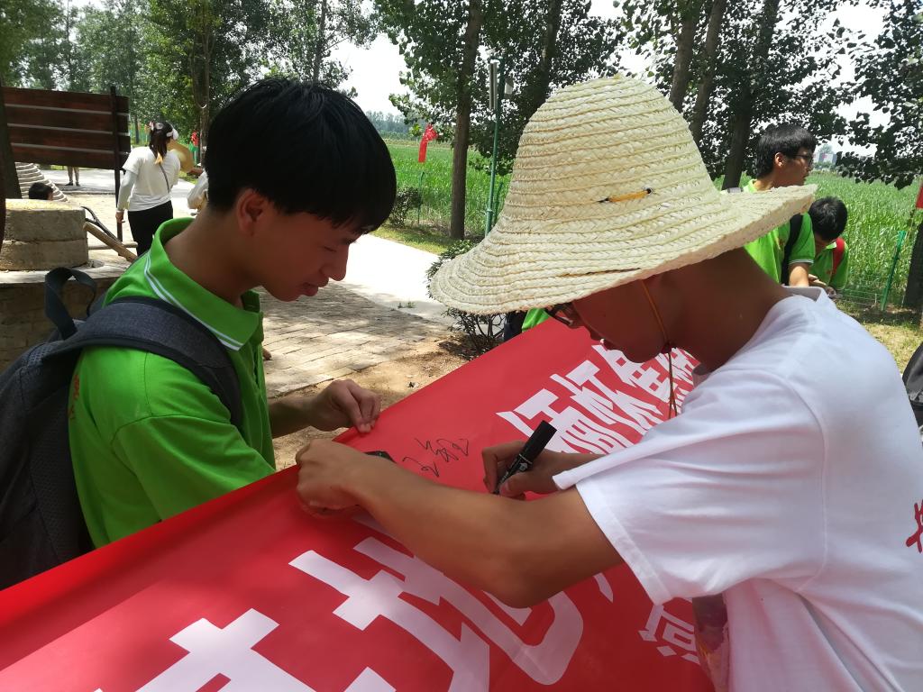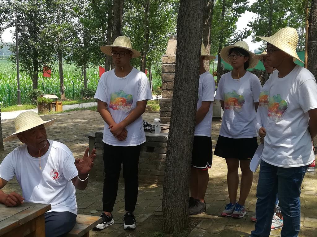 稍后,调研团到达张庄村焦裕禄精神体验教育基地,认真聆听基地村长讲解焦裕禄治理三害的事迹,村长热情地为调研团成员描述了习近平总书记三次考察兰考的情景,并表示出了兰考人民继续发展兰考的决心和信心他讲到“焦裕禄书记带领我们治风沙,一铁锹土一铁锹土往上翻,再栽上泡桐,当天晚上就刮了很大的风,大家都很忐忑,不知道我们的方法有没有效,第二天一看,那片树林依旧好好的,我们都很高兴,找到了解决办法。”朴实的话语真情流露,他自豪的说,“你们看到的树已经是第三代了,我们也在不断的摸索,找更适合的路。”同学们听完感慨良多。接着,为加强自身建设,更深入体会当时的艰辛,调研团在基地参加义务劳动,汗水顺着大家的脸颊流下,虽辛苦,心中对焦裕禄精神的理解却更加透彻。