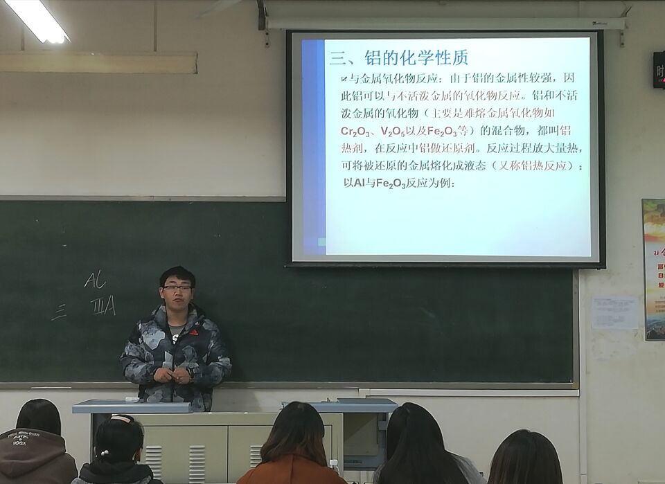 本次比赛共有48位选手参与,形式分为两种--讲课和说课,时间均为7分钟。比赛中,选手们用最饱满的热情来拥抱这方讲台,以富有激情的演讲来展示他们的成果。他们个个力争上游、全力以赴、毫不示弱,彰显出了化学化工学院永不服输的精神面貌。其中,杨乐乐从独特的视角出发,在日常生活中寻找实例,将复杂难懂的书本知识转化成学生脑中的易记图形,简单明了,赢得了其他选手的惊赞。除此之外,王言激情四射的表现、洪亮高昂的声音、缜密细致的PPT;李晓雨诙谐幽默的语言、轻松自然的谈吐、生动形象的举例,使得教室里掌声阵阵。说课的选手们声音洪亮有力、条理清晰;讲课的选手从实际情况出发,语速稍缓,板书设计合理。每位选手均表现得都很落落大方,挥洒自如,语言富有创意,彰显了他们扎实的教学基本功和教书育人的热情,现场气氛浓烈,掌声不断。