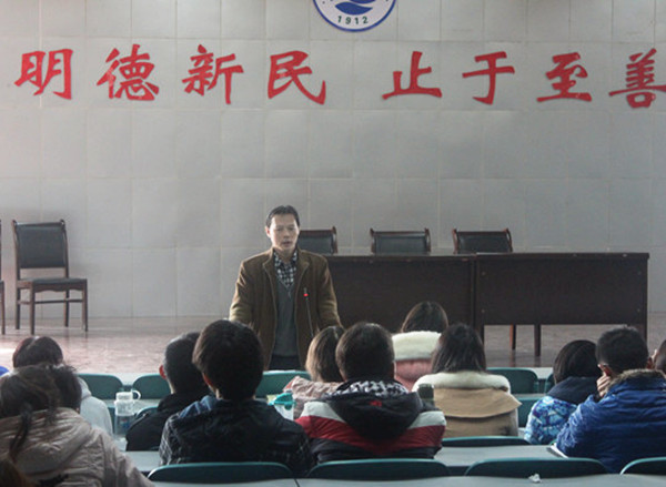 12月4日上午,化学化工学院学术报告厅二楼内掌声不断,伟德betvlctor体育官网材料系主任丁涛在此作“大三学生考研与就业答疑解惑”的讲座,11级辅导员王路娟携该全年级学生到场聆听。