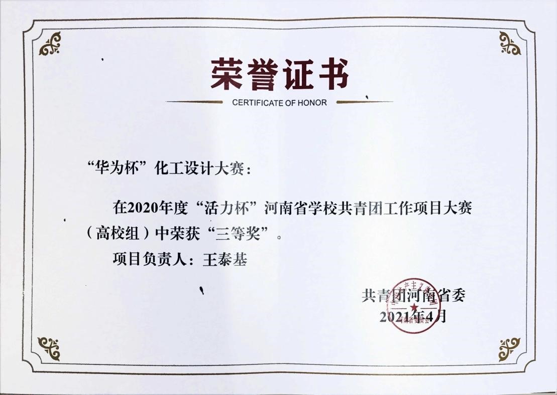 王泰基自入学以来多方面均衡发展,获得了国家励志奖学金、道兴奖学金等4项奖学金,被授予“河南大学三好学生”、“河南大学优秀学生干部”、“河南大学优秀社团干部”等4项荣誉称号,以及全国大学生化工设计竞赛华中赛区二等奖、“活力杯”河南省学校共青团工作项目大赛三等奖等3项省级及以上奖励。