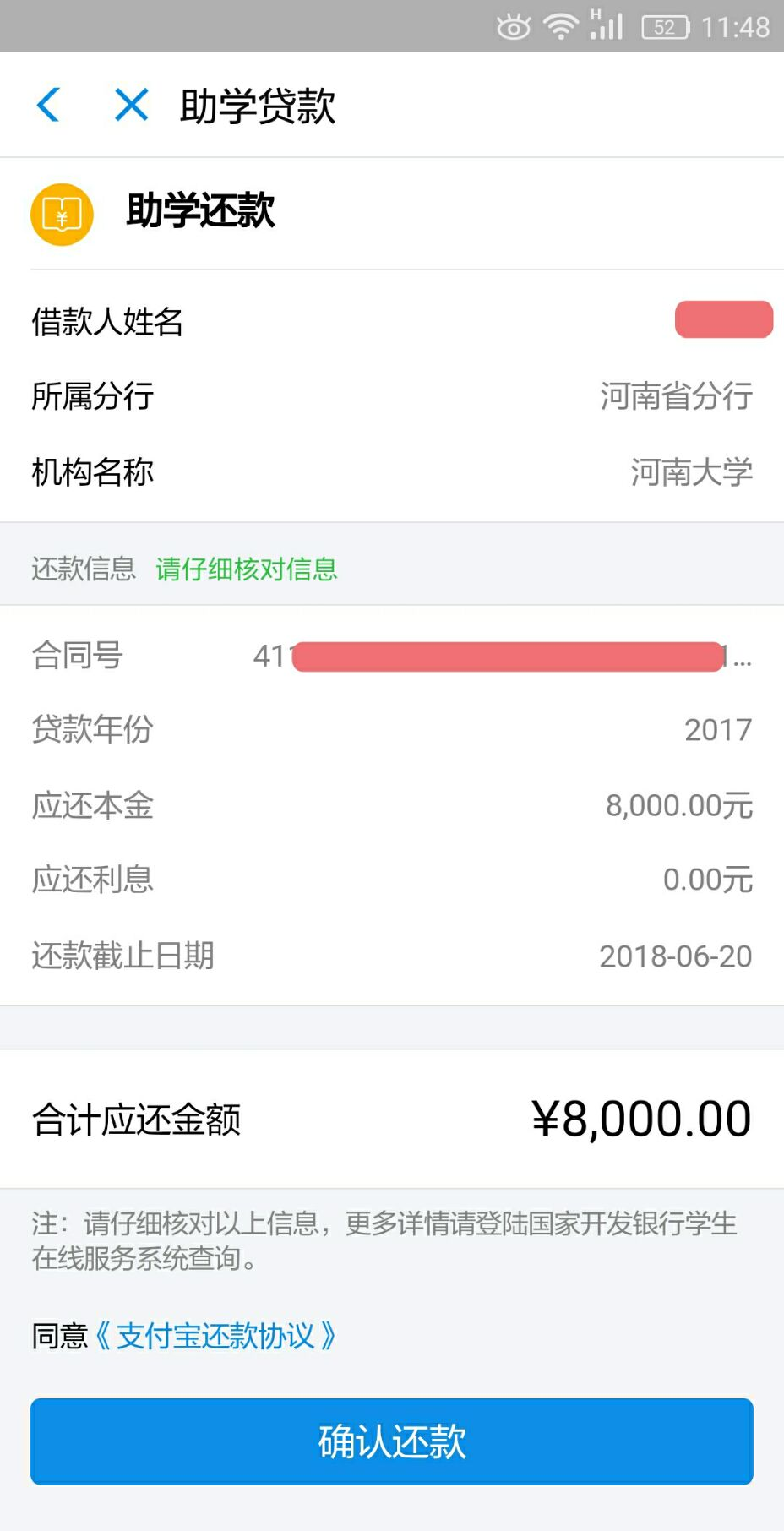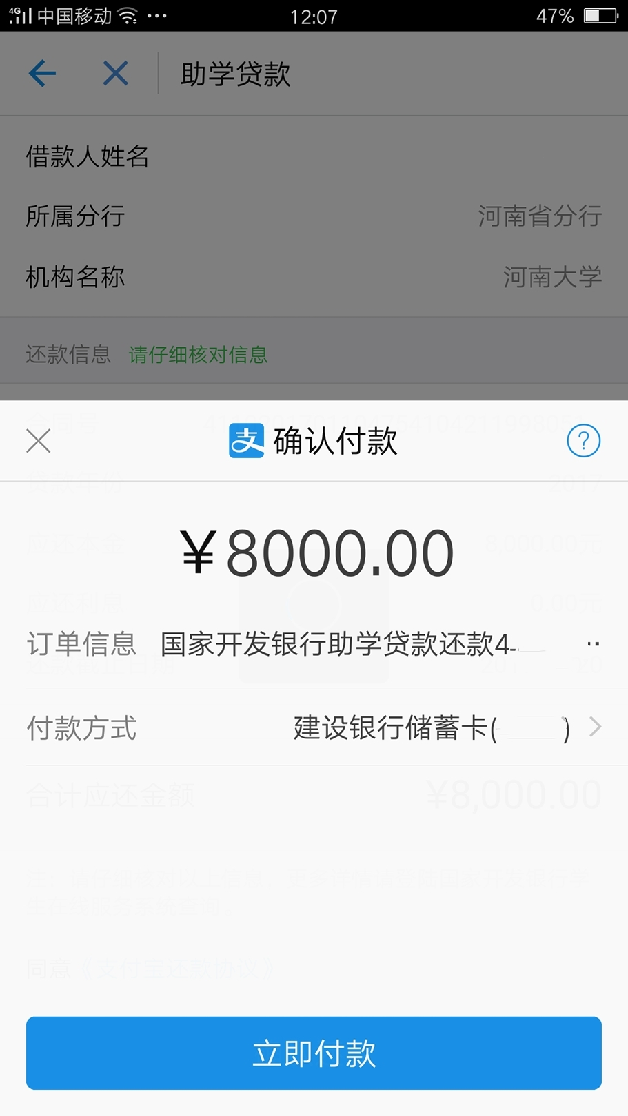 8. 还款成功,可通过支付宝账单查询该笔贷款还款信息