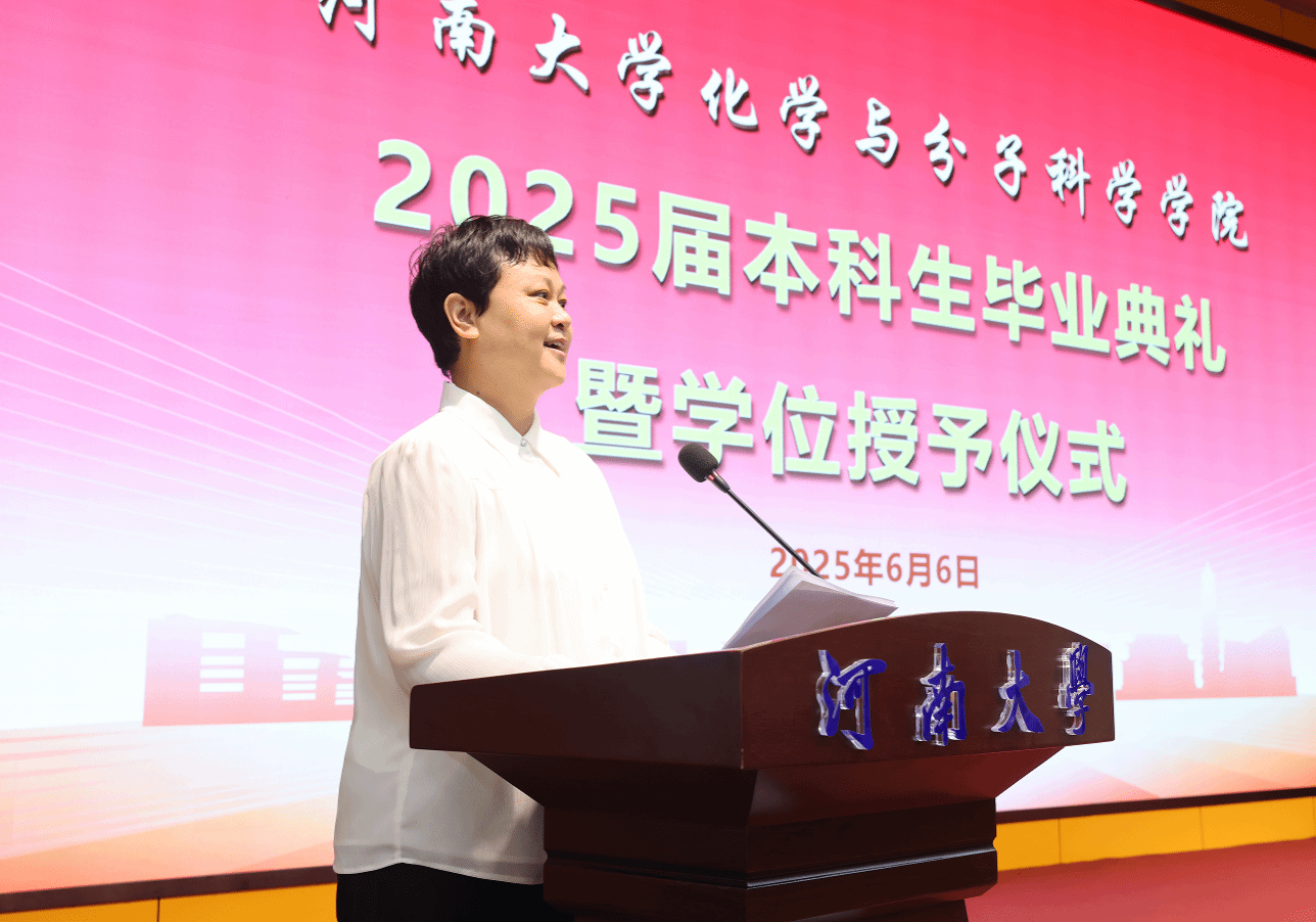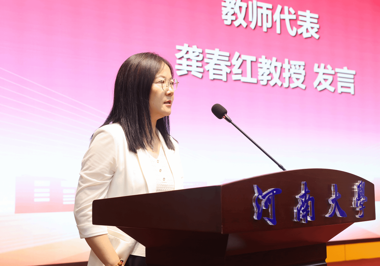 教师代表,河南省特聘教授、博士生导师龚春红向毕业生们提出三点期望。一是心中有愿景,脚下有方向;二是完成角色切换,迎接更高的挑战;三是以担当书写未来。她以师长的殷殷嘱托,勉励毕业生们志存高远、勇担重任,向着更辽阔的天地前行。最后,龚春红说道:“母校永远是你们的港湾,希望同学们常回家看看”。