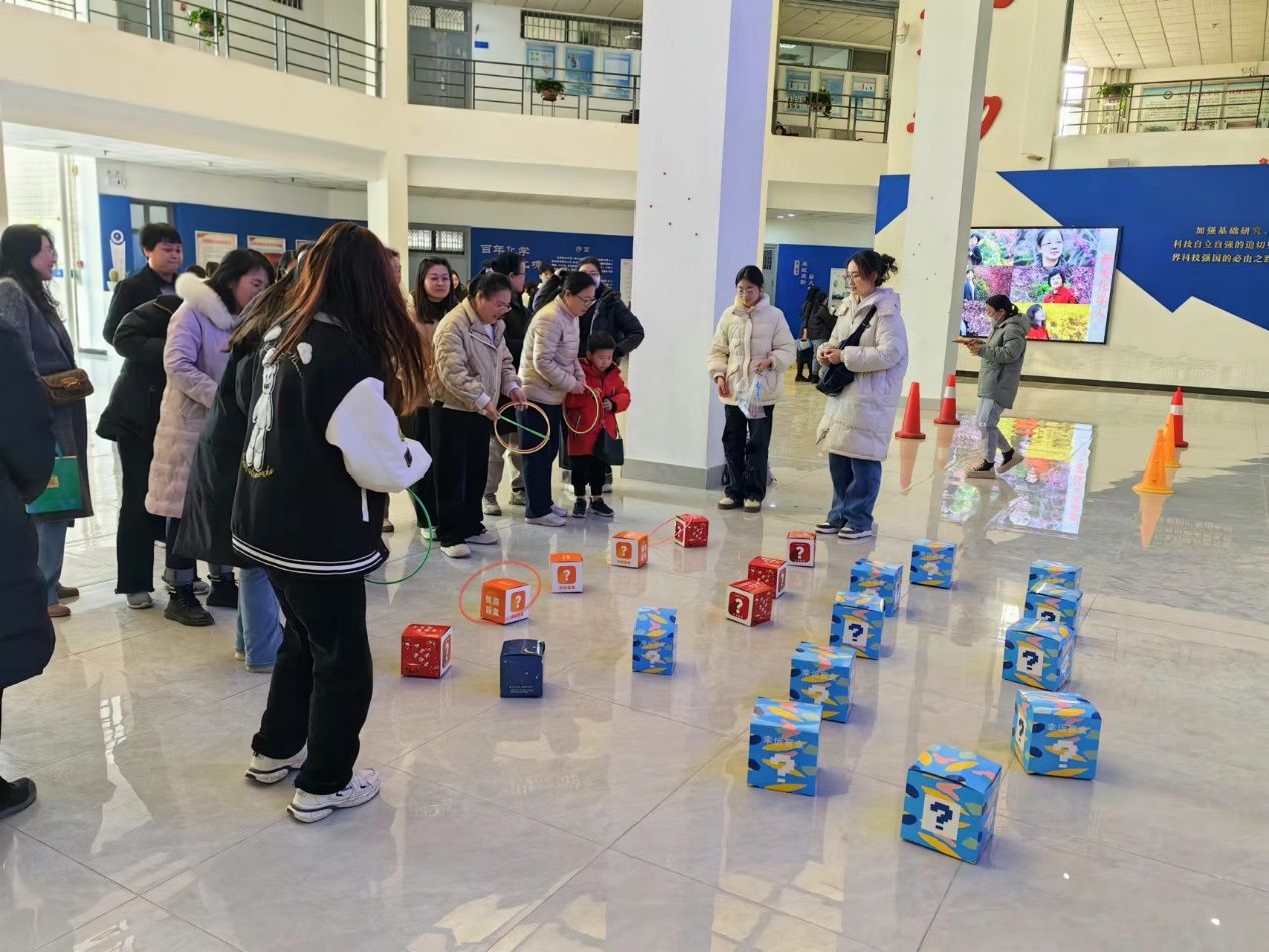 本次庆祝活动的趣味运动包括踢毽子、欢乐套圈两项个人项目和平托乒乓球接力一项集体项目。踢毽能手身姿矫健,腿脚灵活,身体动作协调,彩色毽子上下翻飞,引来观众连连喝彩;套圈奖品采用盲盒形式,老师们或近或远投出圆圈,套住后打开盒子收获惊喜;平托乒乓球接力由五人自由组队,单手用球拍托住一颗乒乓球绕桩往返跑,参赛选手聚精会神,极力保持好平衡,快速通过障碍物,平稳交接,团队成员互相鼓励,现场观众高呼加油,充分体现友谊第一比赛第二的体育精神。